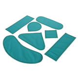 Комплект защитных пластин состоит из 7 элементов различного размера и формы, предназначен для защиты отдельных органов пациента при рентгенологических исследованиях.